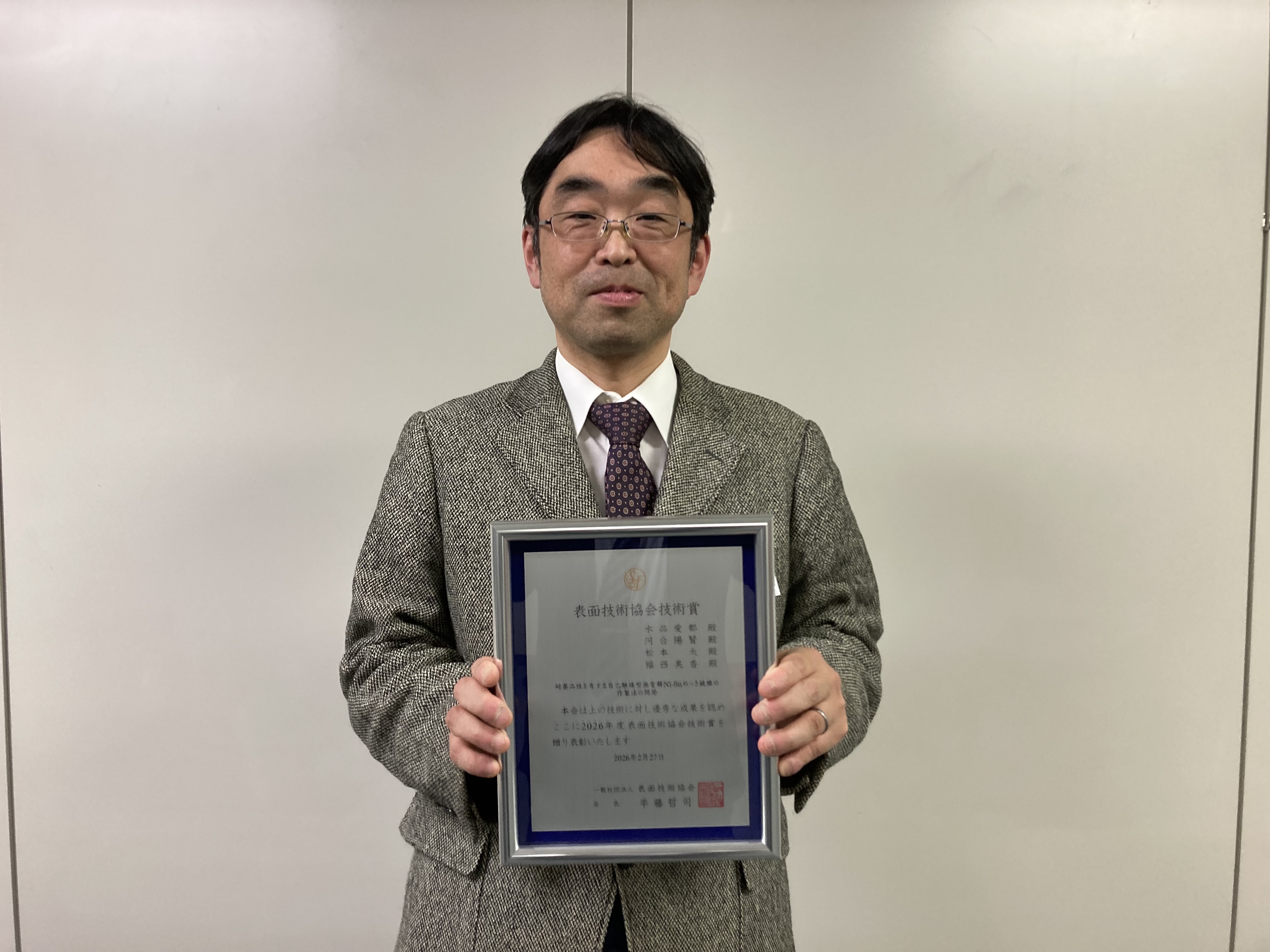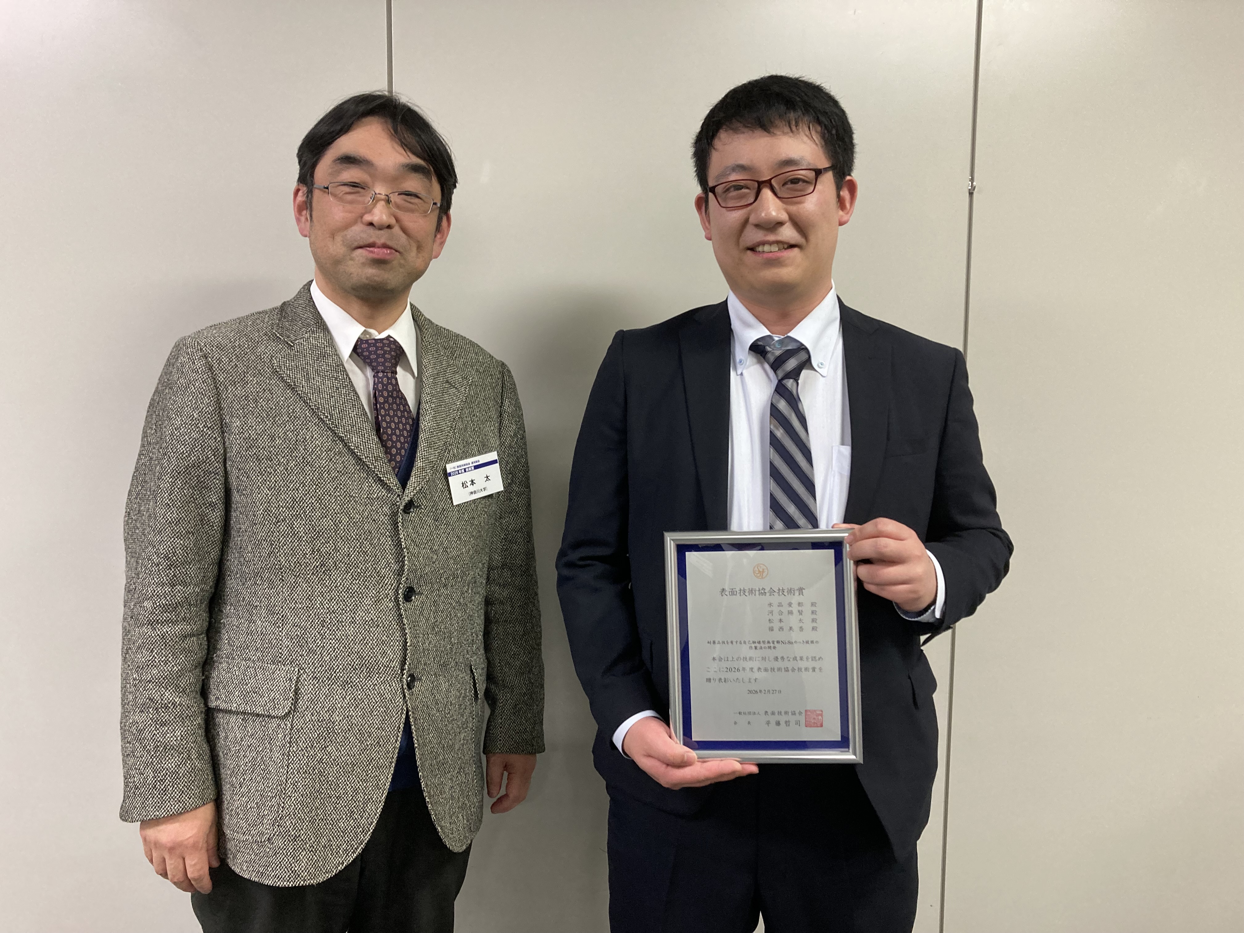 2026年度表面技術協会技術賞受賞 (2026. 2. 27)